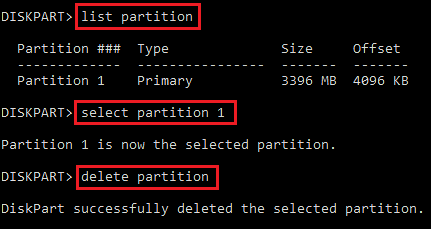 You can then delete all existing partitions on the device by typing d, and then adding a single new partition & format it.